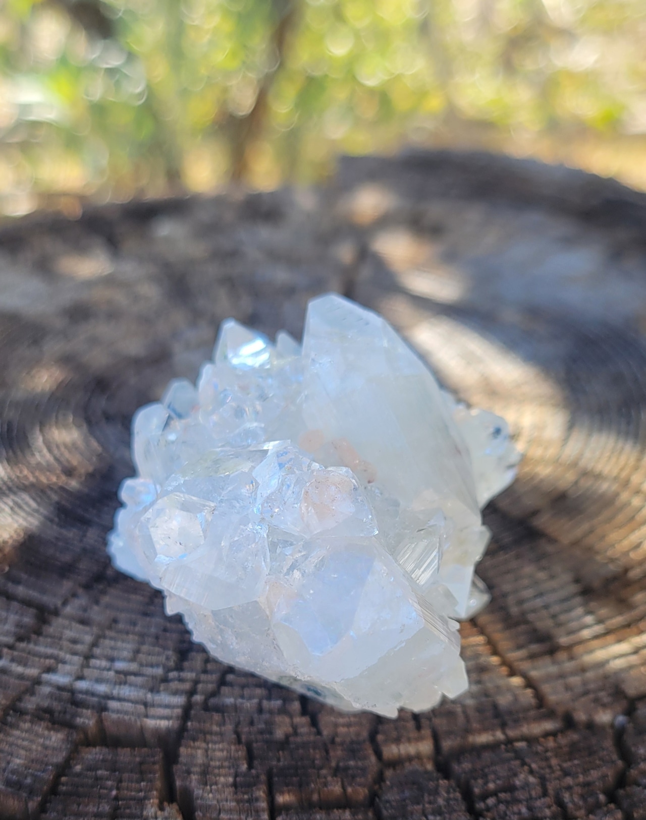 透明な中にほんの少しだけ緑がかったような、氷河の奥底から出てきたような色味のクリスタルです。